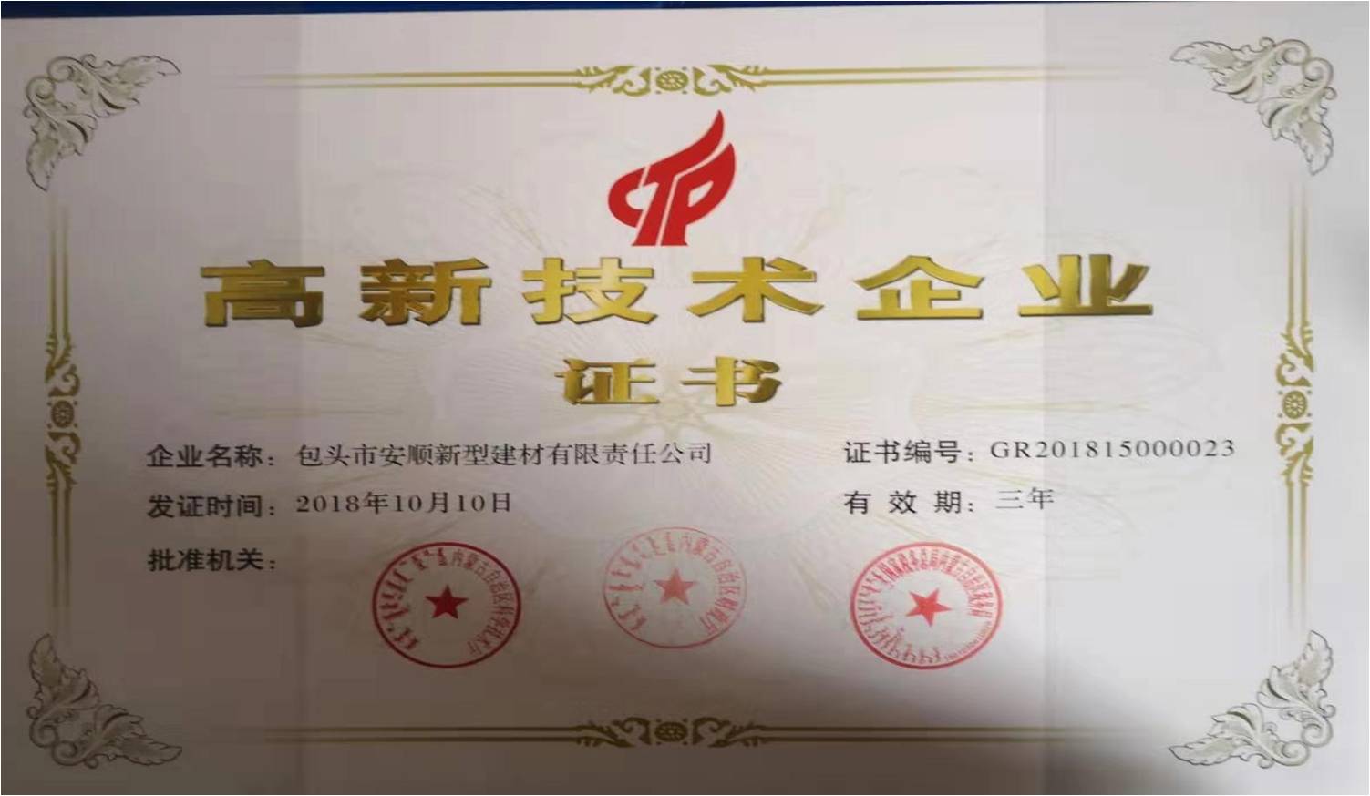 PATENT CERTIFICATE